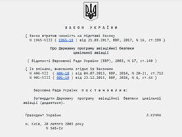 Закон України «Про державну програму авіаційної безпеки цивільної авіації»